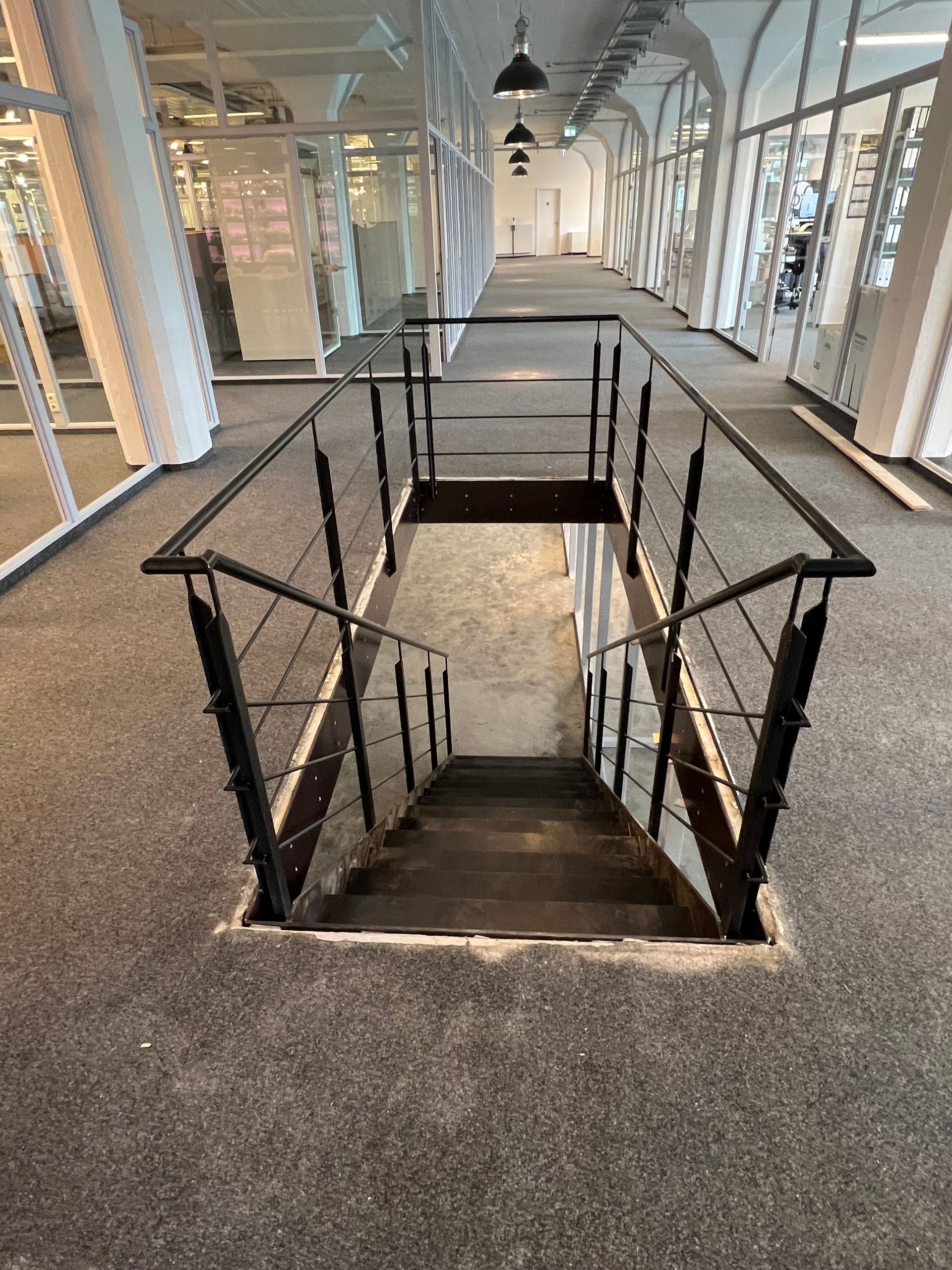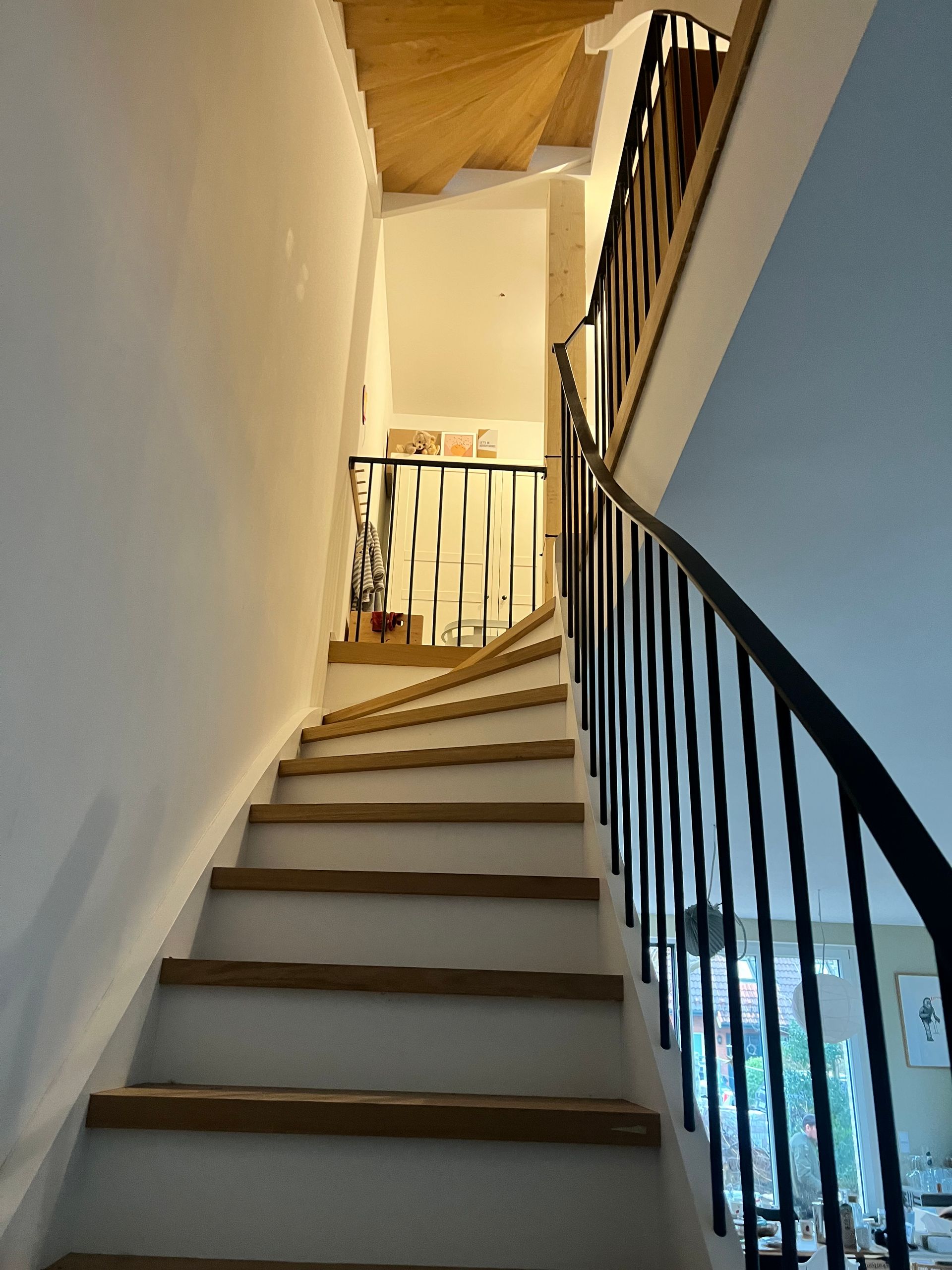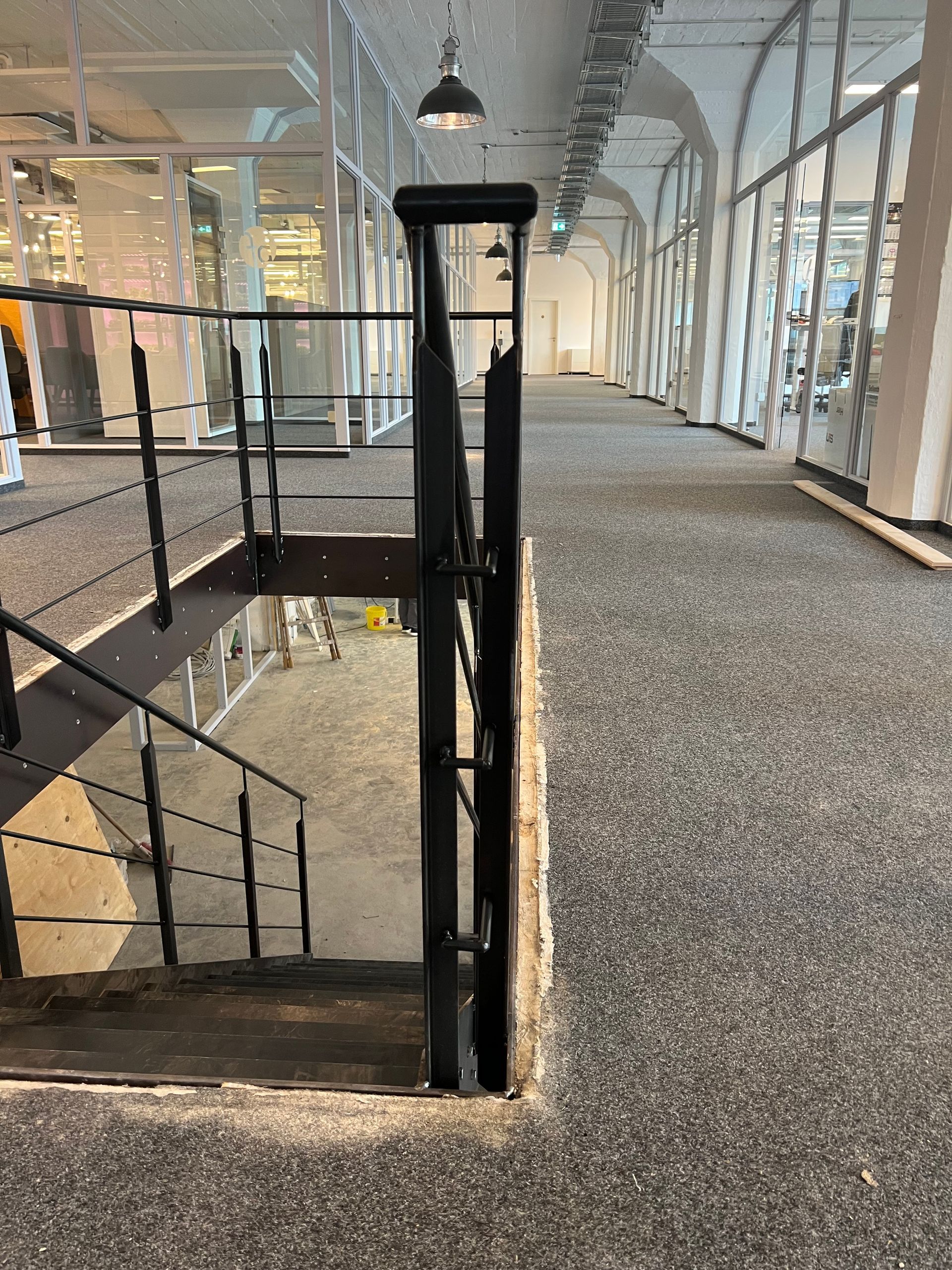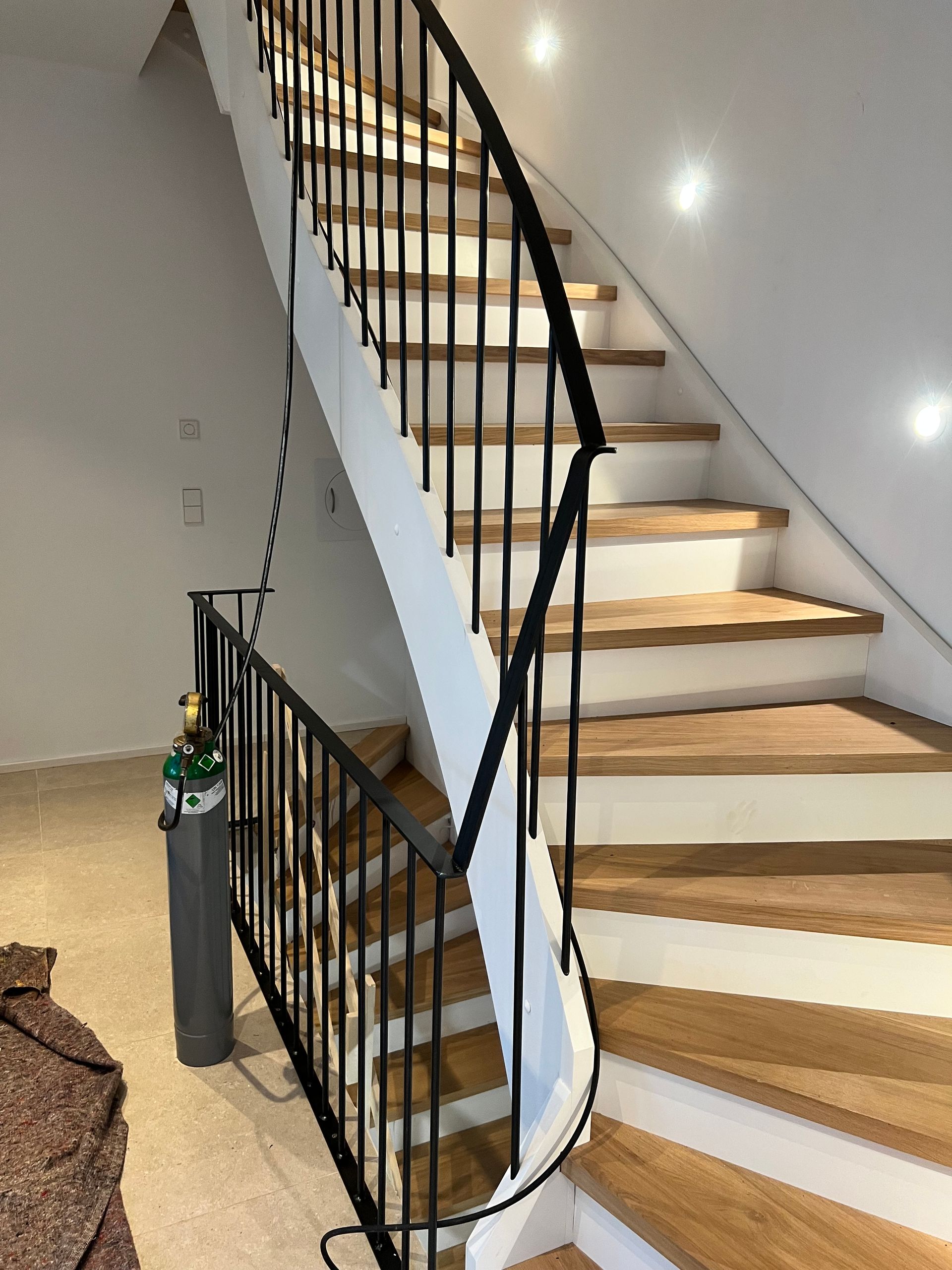 Hier haben wir eine wunderschöne Treppe mit einem Geländer in Handarbeit gefertigt und montiert