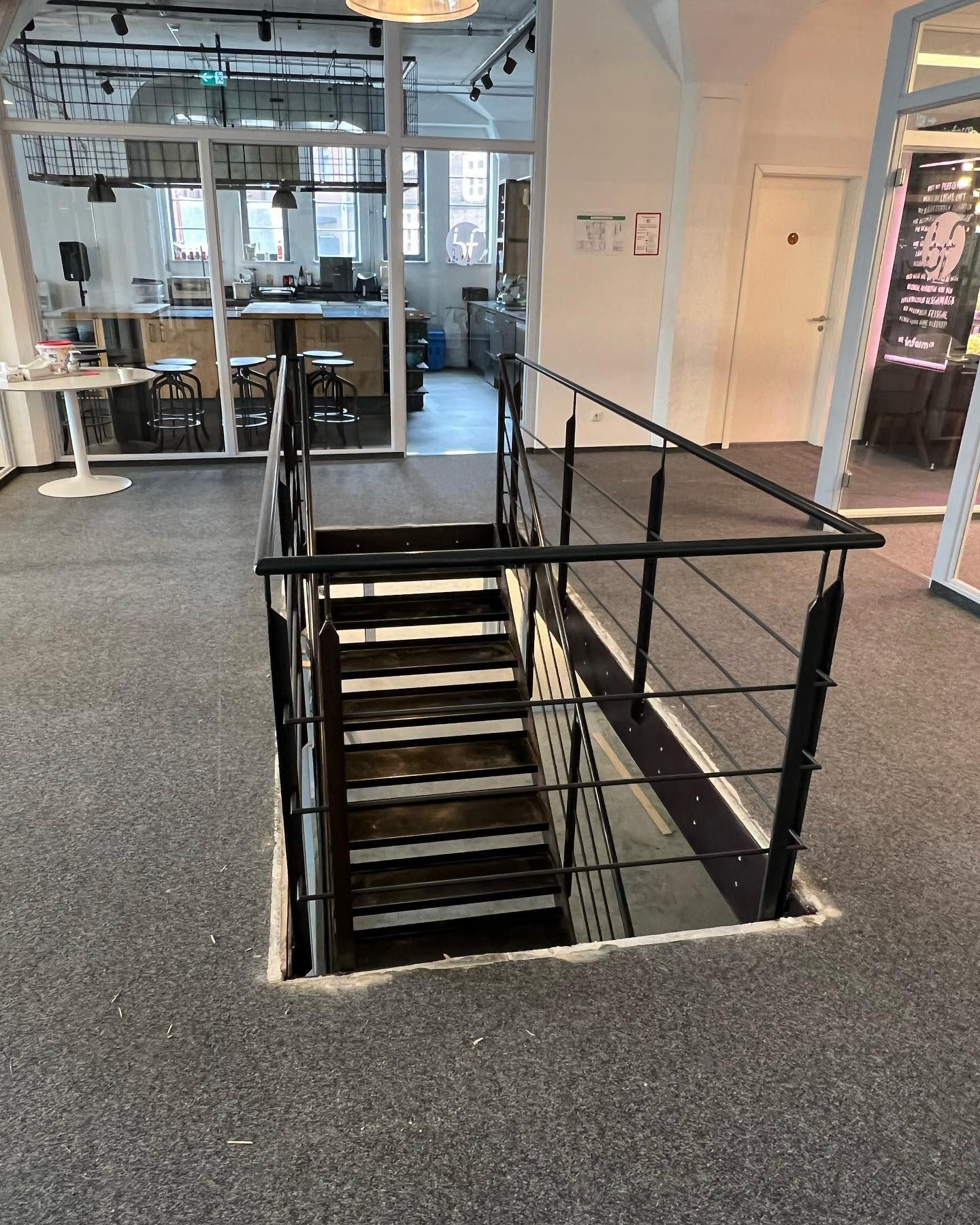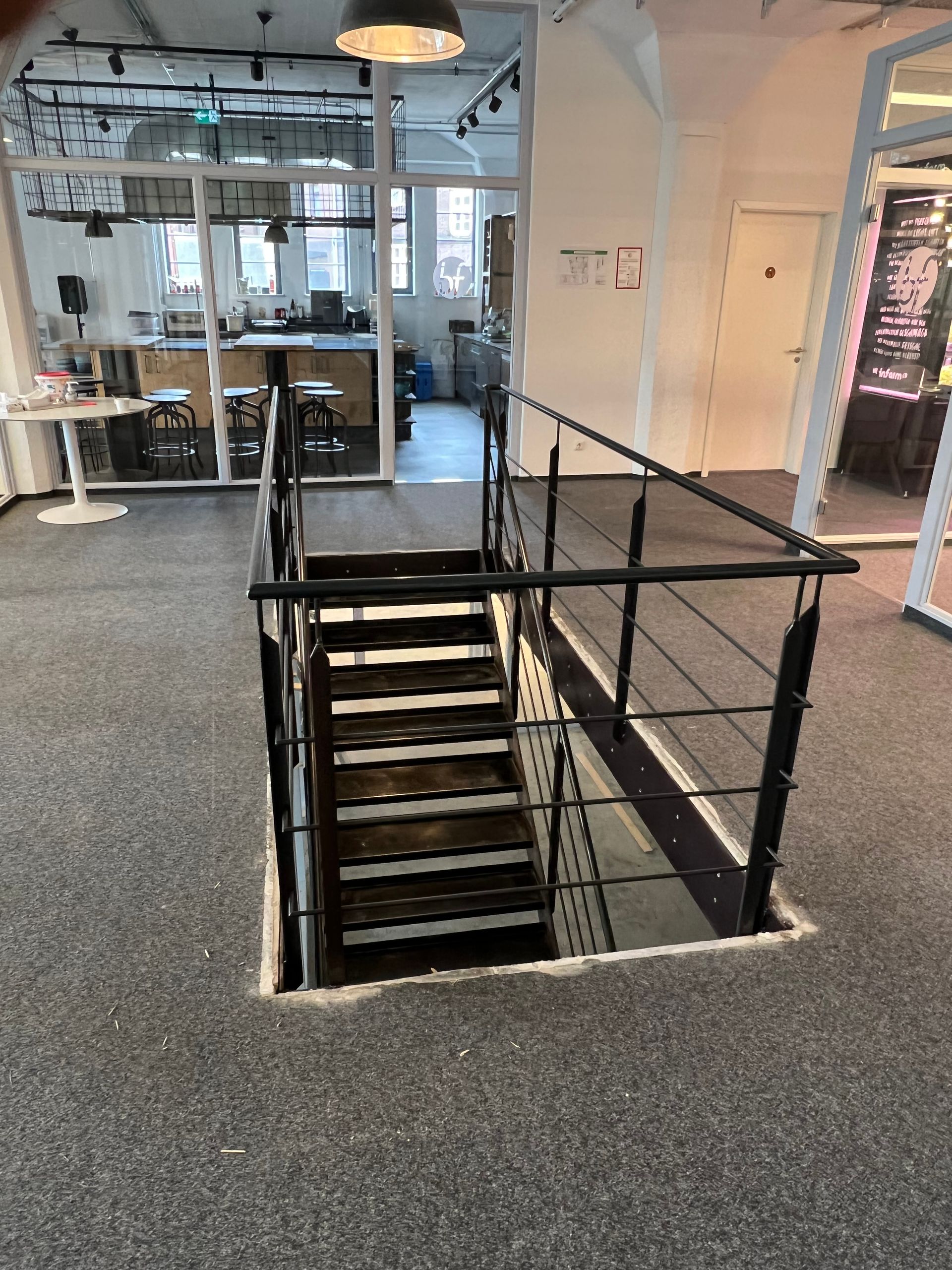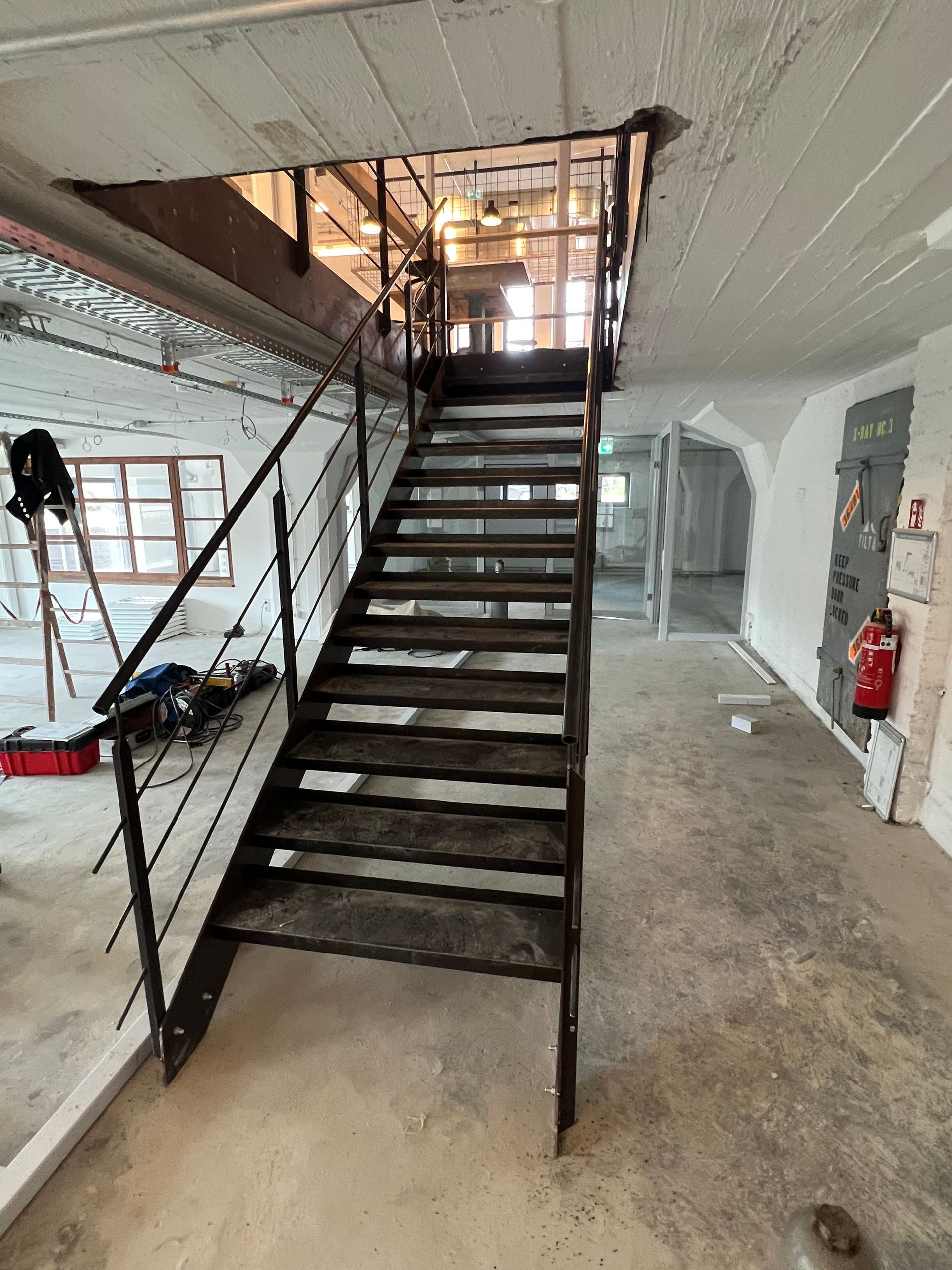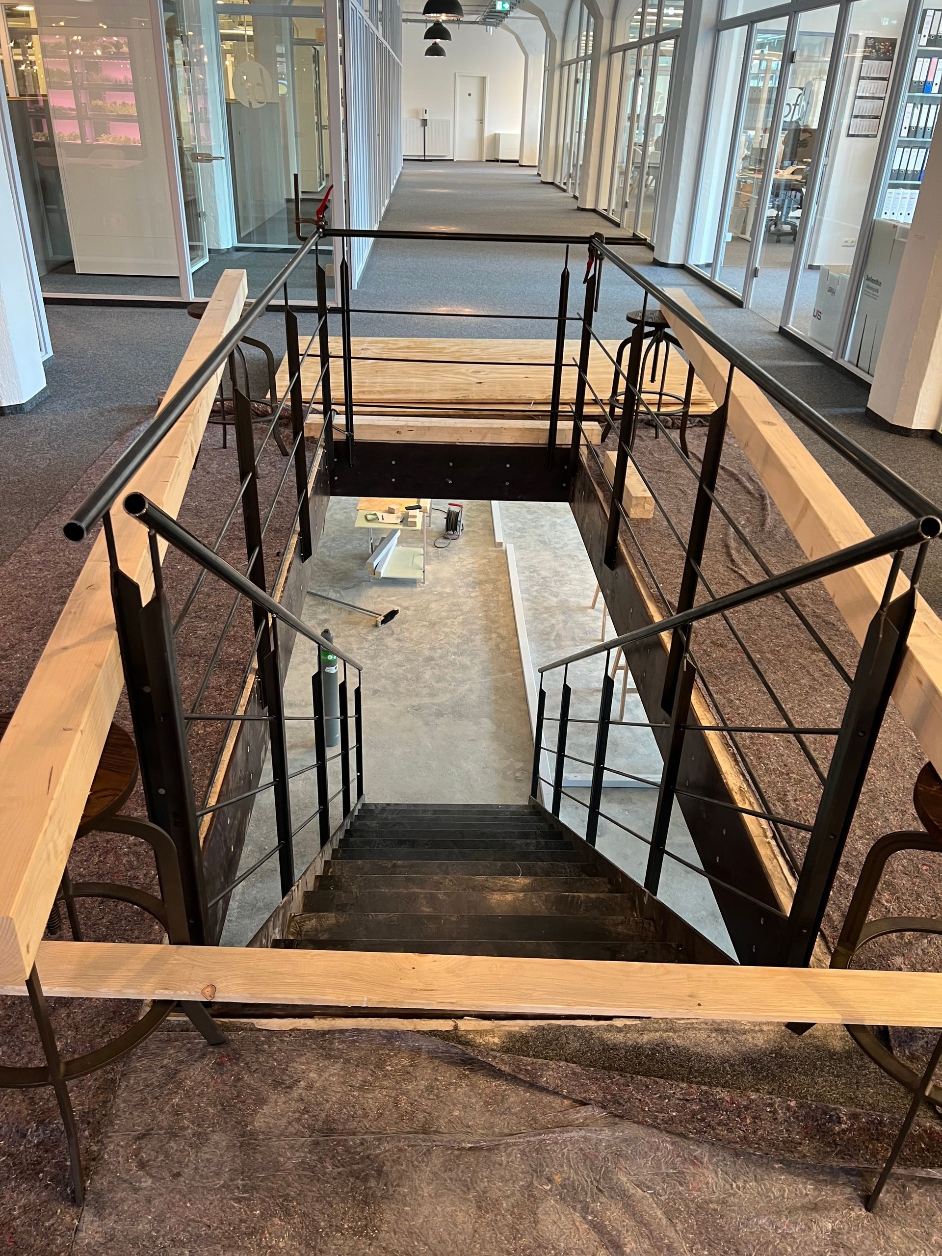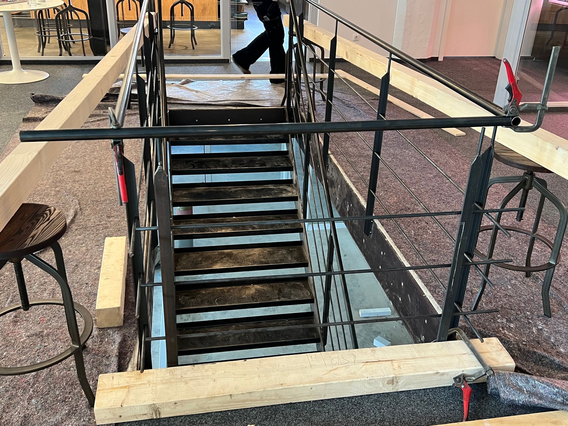 Hier haben wir eine wunderschöne Treppe mit einem Geländer in Handarbeit gefertigt und montiert